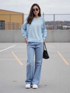 Women’s Fall Loose Pullover Solid Color Long Sleeve Crew Neck Sweatshirt Casual Tops Hoodies