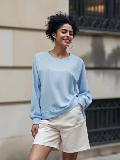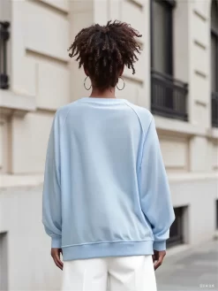 Women’s Fall Loose Pullover Solid Color Long Sleeve Crew Neck Sweatshirt Casual Tops