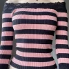 Women’s Off Shoulder Sweaters Chest Folding Boat Neck Long Sleeve Slim Fit Casual Knitted Tops