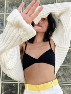 Women Ultra-short Sweater Coat 2024 Autumn Winter Long Sleeve Loose Knitted Crop Tops Solid Color Sexy Cardigan Sweaters Tops